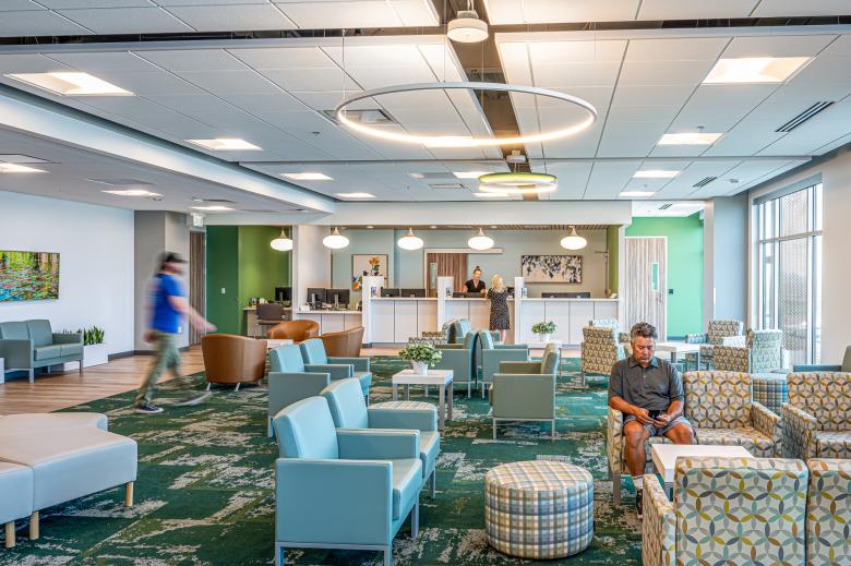 The four-story Saltzer Health medical office building in Meridian provides an array of specialty clinics, five-room outpatient surgery center, physical therapy, gastroenterology, endoscopy, urgent care, family medicine, and five-modality medical imaging center in an easily accessible, welcoming medical campus. The overall Saltzer Health design aesthetic was developed to support a different way of delivering health care services. From the ease of access and all-in-one campus to the efficient space layout and refreshing interior design, the ethos of care is wholly patient centered.