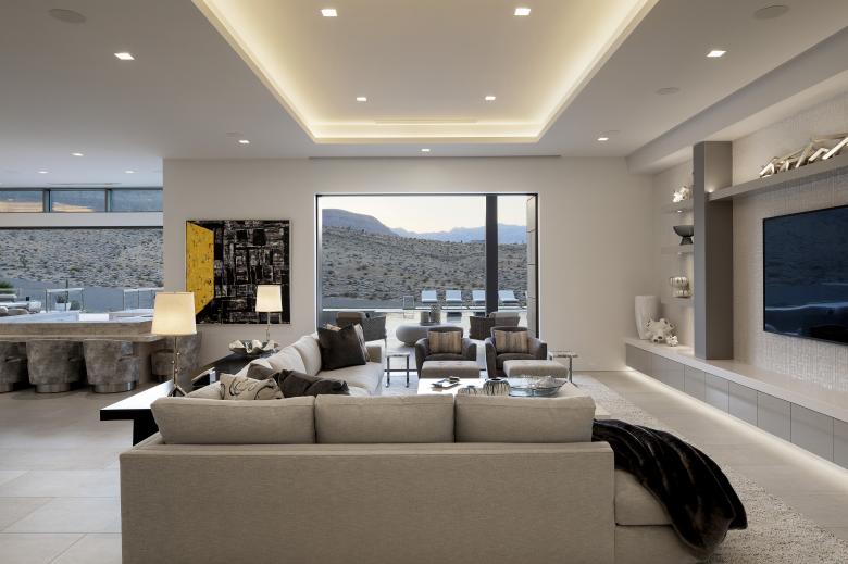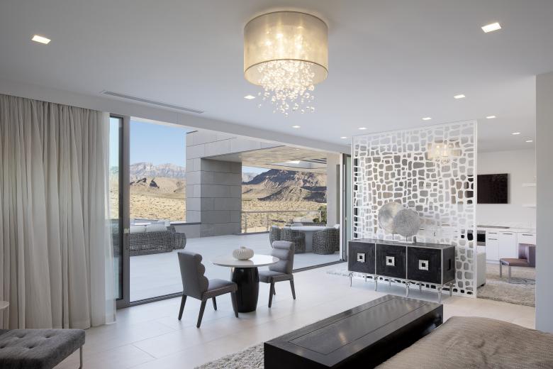 Sunset Summit Residence is located in the foothills of Las Vegas, Nevada, and captures the true essence of desert architecture, while expressing high design and engineering. The clients’ desire for a large circulating home, that would also capture views in every direction from each space on this incredible, five-acre lot within the signature development The Summit, was accomplished in every way. “The idea was to create a calm, tranquil, spa-like feeling that softened the edges of modern design and felt very livable,” notes lead architect Jesse Vigil of Cushing Terrell, an architecture and engineering firm with multiple offices across the Western U.S. (the firm practices in Las Vegas under the name CTA).