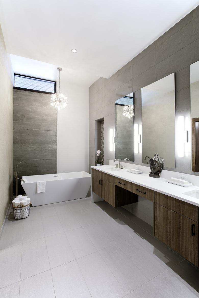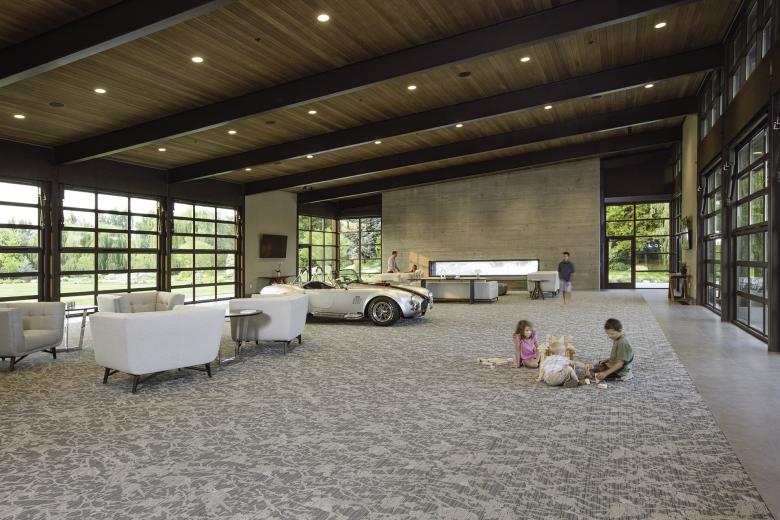 The home is designed to be flexible and customizable. The operable hangar doors can enclose the living space or expose it to become part of the outdoors. Discreet, smart-panel-operated roller shades can disappear into the ceiling to frame a symmetrical view of the world-class vista. All the while, fully-integrated systems function out of sight to maintain user comfort.