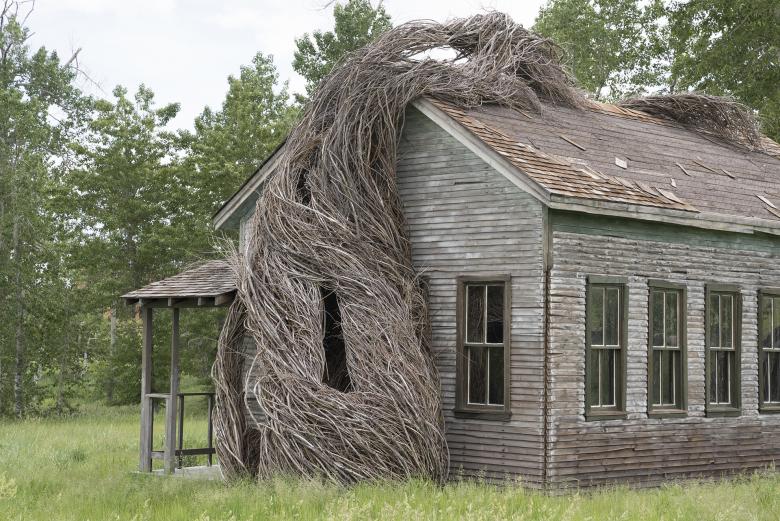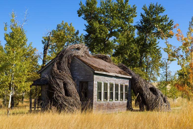 In January 2015, Cushing Terrell was contacted about designing a building to be used as a backdrop for a famous sculptor’s on-site commission at the 12,000-acre-spanning Tippet Rise Art Center, located just outside Fishtail, MT. The program requirements for the project were very simple: replicate a late-1800s one-room Montana schoolhouse to provide a relatively protected interior space for housing a sculpture made of saplings. The true purpose of the project was to inspire internationally-renowned Patrick Dougherty, who would design and create his sculpture while on-site.