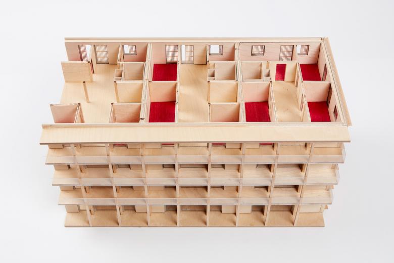 DGJ Architektur unterstützt das Projekt in einem gemeinsamen Entwurf und Entwicklungsprozess seit 2015. Aufgrund der engen Zusammenarbeit ließ sich für das CA-Gebäude eine völlig neue Wohnform entwickeln, die auf zeitlichen und räumlichen Maßstäben eine flexible Nutzung und Anpassung der Wohnungen ermöglicht. Die Grundform der Wohnung besteht aus einer Gemeinschaftsfläche in der Mitte, um die Individualräume und der Sanitärbereich angeordnet sind. Die Individualräume bestehen jeweils aus zwei Teilen mit je 7qm Fläche: eine räumlich geschlossene Kernzone und eine offene Zone, die zunächst räumlich nicht vom Gemeinschaftsbereich der Wohnung getrennt ist. Die flexible Zone kann nach den individuellen Wünschen und Lebensgewohnheiten der einzelnen BewohnerInnen entweder komplett offen verbleiben, durch Raumteiler (Tisch, Regal) teilweise abgetrennt oder auch, durch das Versetzen der Wand der Kernzone oder Einsatz einer zweiten Wand, komplett räumlich getrennt werden. Die Konstruktion ermöglicht es, dass die Innenwände im Selbstbau mit einfachen Mitteln hergestellt und versetzt werden können. So wird das Gebäude zu einem Labor, in dem die einzelnen BewohnerInnen und Wohngemeinschaften den Raumbedarf, die Nutzung und die räumliche Konfiguration der Wohnung zwischen Individual- und Gemeinschaftsflächen rekonfigurieren und verhandeln können.