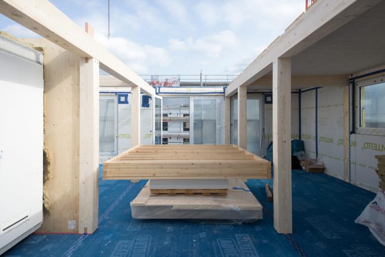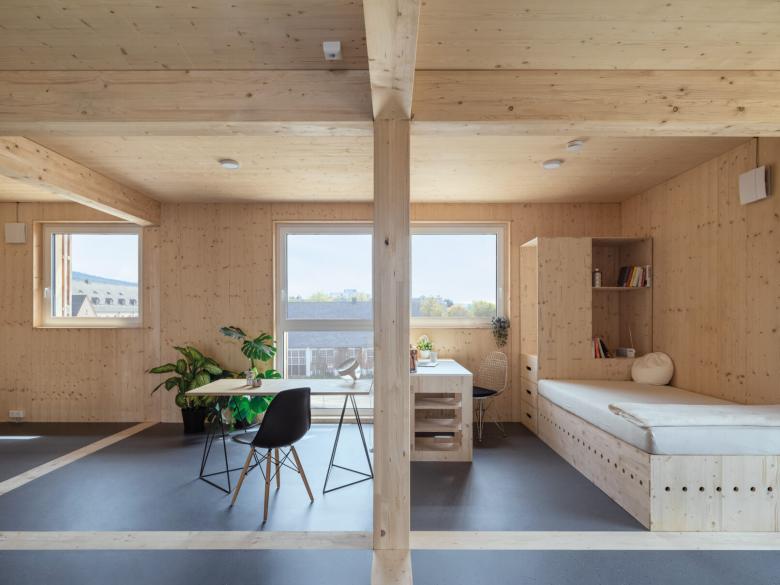 Das Projekt ist Teil der Förderung des Bundesinstituts für Bau-, Stadt- und Raumforschung (BBSR) im Bundesamt für Bauwesen und Raumordnung (BBR) im Programm „Variowohnungen“ und des Förderprogramms „Holz Innovativ“ des Ministeriums für Ernährung, Ländlichen Raum und Verbraucherschutz Baden-Württemberg, das aus Fördermitteln aus dem Europäischen Fonds für regionale Entwicklung (EFRE) und Landesmitteln finanziert wird.