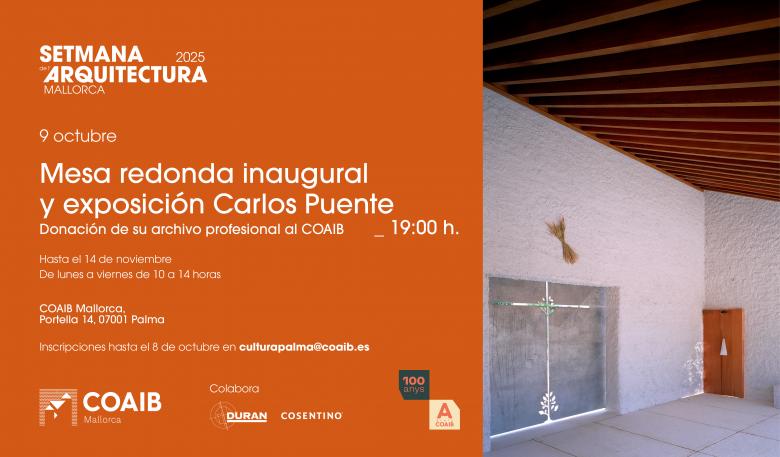 El COAIB acoge la exposición monográfica dedicada al arquitecto Carlos Puente. Autor de una obra escasa pero de gran calidad, si tuviéramos que destacar una característica de la misma (tanto de su primera etapa con Víctor López Cotelo como la posterior en solitario), hablaríamos de su gran sensibilidad hacia el lugar y la memoria a la hora de afrontar los proyectos, sin renunciar a los principios del Movimiento Moderno.