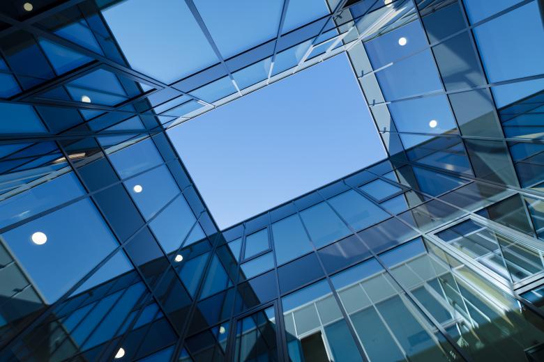 Die Fenster des Neubaus erhalten einen Sonnenschutz aus Aluminium-Raffstores. Die nutzbaren 3 Innenhöfe des Neubaus werden mit Pfosten-Riegelfassaden aus Sonnenschutzglas versehen.