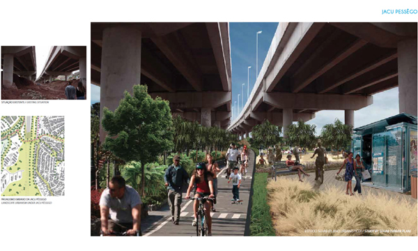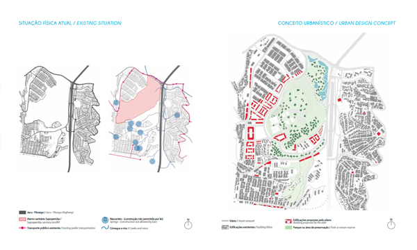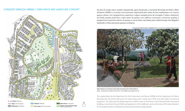 The precarious settlements Jardim São Francisco is located in the extreme east of the city of São Paulo, 30 kilometers or one hour driving time by car, depending on the constant heavy traffic, from the city center. The area is characterized by a steep and hilly topography with many springs and stream-headwaters, an old sanitary landfill and a recently built segment of the new belt highway. Sehab decided in 2010 to elaborate an urban plan that would finally turn the punctual interventions by the public authorities of the last 30 years into a neighborhood. To meet the current housing demand in the area, Sehab needs to build at least 650 social housing units. The plan allots for 2200 new housing units (1200 social housing units and 800 market rated apartments), 480 commercial units, one big commercial entity that should create job opportunities and include educational and communitarian functions, and the use of innovative “green” technologies. One of the main ambitions of the plan is, in close collaboration with the SVMA and the Ecourbis, to turn the old sanitary landfill in an attractive park for the neighborhood and the region. The park will also feature wetlands for the treatment of storm water and contaminated water of the landfill.