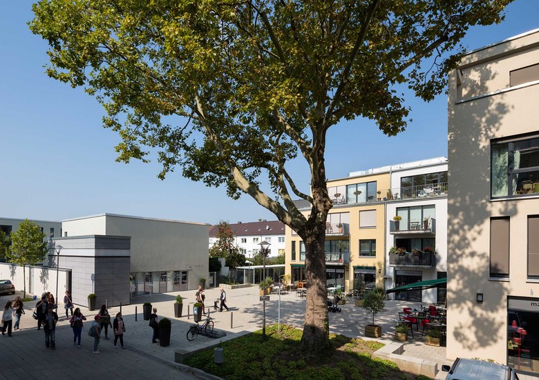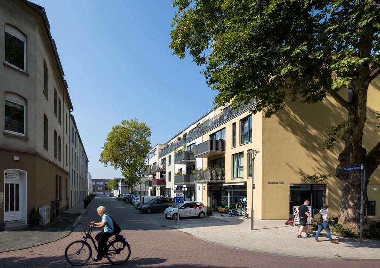 Ein neues Stadtquartier – vernetzt nach außen und innen – Der Entwurf verfolgt das Ziel, ein klar ablesbares Stadtquartier mit eigener Identität zu schaffen, das sich auf vielfältige Weise mit dem Umfeld vernetzt und in die Stadt integriert. So werden gemeinschaftliches, integratives und individuelles Wohnen in Nachbarschaften ermöglicht. Das Herzstück der Claudius-Höfe bildet der Marktplatz als zentraler Freiraum. Differenzierte Außenräume prägen den Ort. Räumliche und gestalterische Eigenständigkeit schafft Identität.