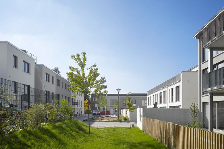 Komponenten nachhaltiger Planung – Zur Energieeinsparung werden die Gebäude im 3-Liter-Standard konzipiert. Die Beheizung erfolgt über die im Stadtgebiet vorhandene Fernwärme. Die Warmwasserbereitung geschieht zu 60% durch thermische Solaranlagen. Das innovative Energiekonzept wird durch großflächige Photovoltaikanlagen ergänzt.