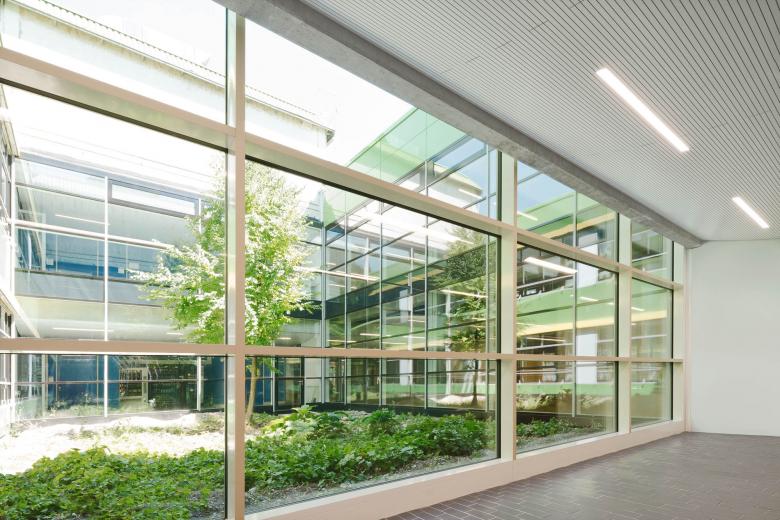 Der prägnante Charakter des Gebäudes mit dem markanten Einsatz der Farbe Grün, der Fassadengliederung und -rhythmisierung sowie der im Inneren erlebbaren Werkstattatmosphäre mit sichtbaren Konstruktionen, Leitungsführungen und Fügungen ist erhalten geblieben. Hellere Farben und sorgfältig ergänzte neue Materialien schaffen eine hohe Aufenthaltsqualität und ermöglichen eine einfache Orientierung in den sich wiederholenden Raumabfolgen.