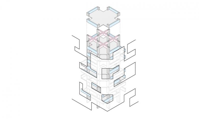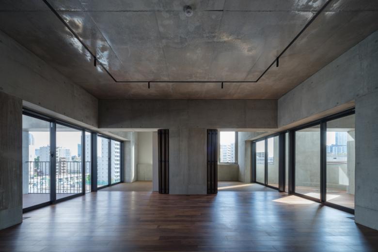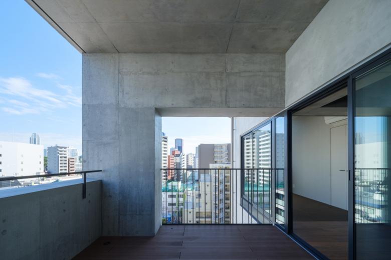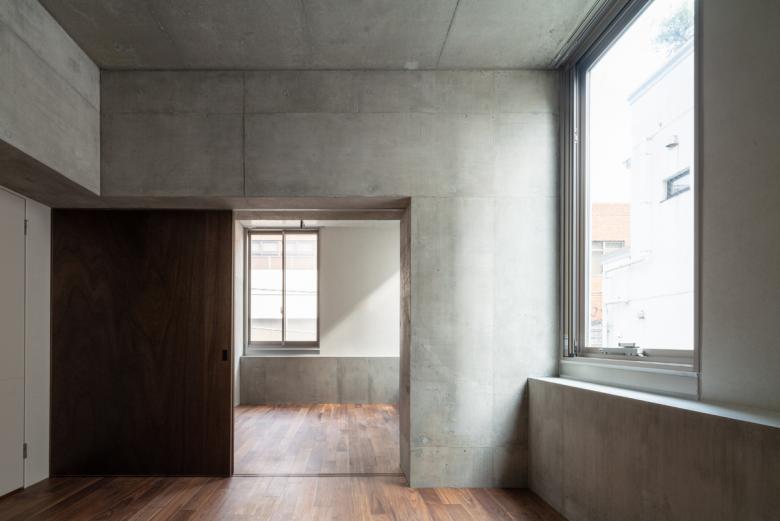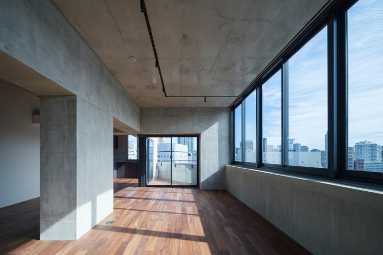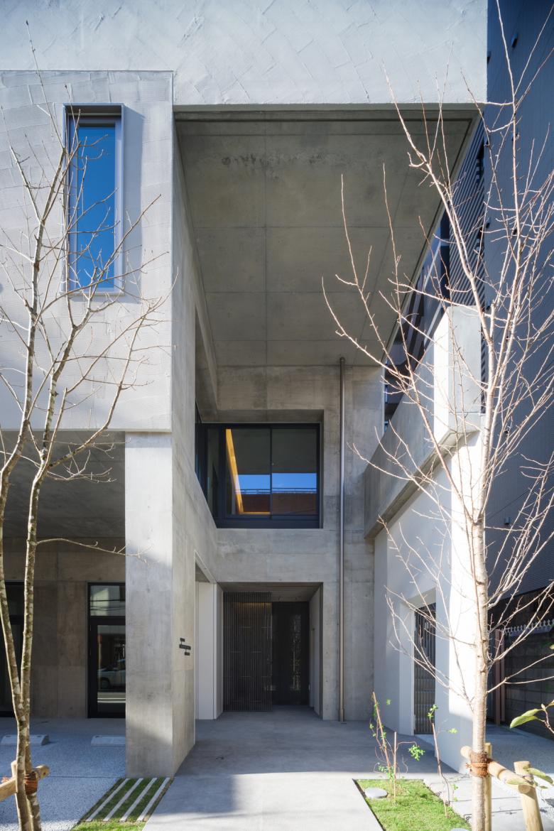 開放的な井桁状の構造を不定形な外皮で覆うことで様々な居場所を生み出している。場所柄外国の方も多く住む可能性が高く、日本の都市部の様々な風景を室内に取り込みながら住み手の多様性も内在し、それらが都市に見え隠れするような雰囲気のアパート。