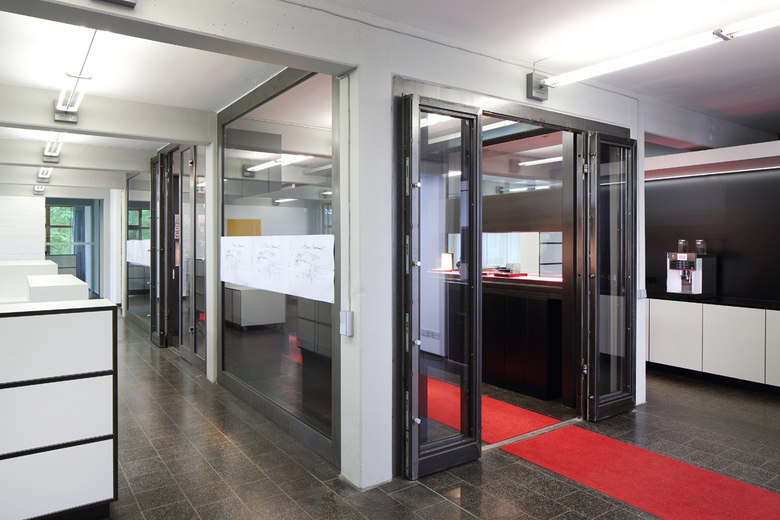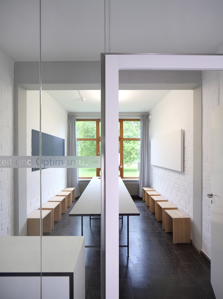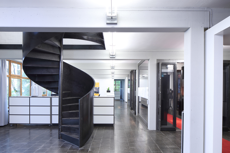 Aufgabe der Architekten war es in die denkmalgeschützte Struktur der hfg den Hauptsitz des Ulmer Schmuckunternehmen Ehinger-Schwarz einzuschreiben, sensibel gegenüber dem Denkmal und klar im Umgang mit der Markenidentität des Unternehmens. Der Innenausbau nutzt die Flexibilität des Gebäudes und stellt das Wesen von Ehinger-Schwarz in den Mittelpunkt: im gläsernen Tresorraum befindet sich die Kollektion und die Markenwerkstatt, in welcher das Neue ausprobiert und diskutiert wird. Rund um diese zentralen Einheiten gruppieren sich unterschiedliche Arbeitsbereiche wie Schmuckwerkstatt, Entwicklung und Marketing. Kommunikative Zonen fördern zusätzlich das Miteinander. Das flexible und bewegliche Möbelsystem ermöglicht dem international agierenden Unternehmen sich ständig neu zu erfinden.