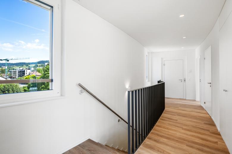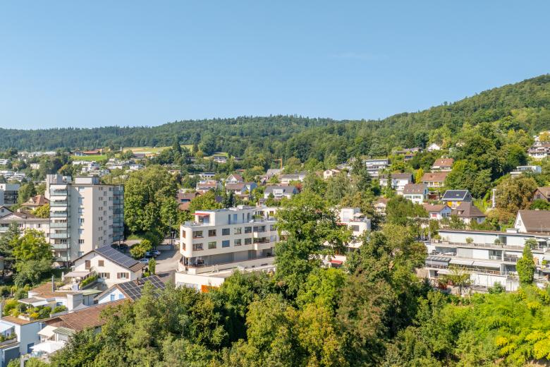 Der natürliche Geländeverlauf des zur Limmat stark abfallenden Grundstücks wirkt durch die Anordnung der Gebäudemasse entlang der Höhenlinien und der daraus resultierenden geschwungenen Form bis in den Strassenraum. Diese Gebäudeanordnung ermöglicht für den grössten Teil der Wohnungen eine lärmabgewandte Ausrichtung der Hauptwohnseite mit schöner Weitsicht zum talseitigen Limmatraum samt optimaler Besonnung. Die im dritten Obergeschoss gelegenen Attikawohnungen profitieren zudem von grosszügigen Terrassen.