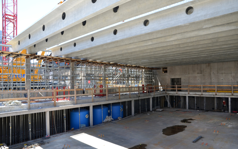 Le projet de groupe scolaire se pose comme articulation entre les parcs voisins de Trembley, Beaulieu et des Cropettes. Le bâtiment longitudinal est composé de trois volumes qui s’étendent sur 167 m de long et offrent une séquence de lecture du programme de l’école. La structure porteuse est en béton armé coulée sur place et revêt quelques particularités, notamment la mise en place de voiles drapeaux et des dalles nervurées préfabriquées précontraintes pour franchir les grandes portées des salles de sport et de la piscine.