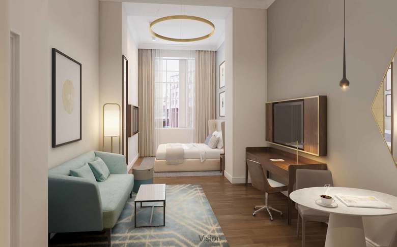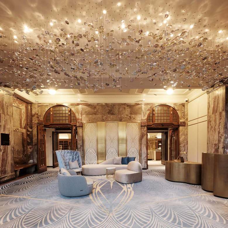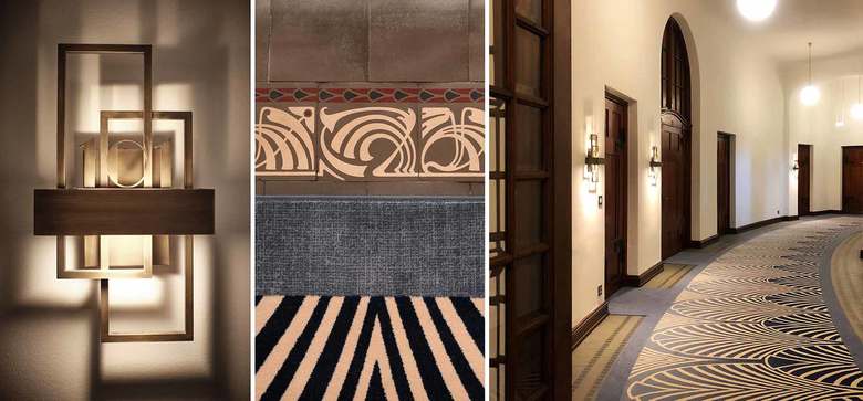 Eine Zeitreise mit unterschiedlichen Stationen: Die denkmalgeschützte Immobilie der ehemaligen Oberfinanzdirektion wurde durch die Umnutzung zum Luxushotel mit einem komplett neuen Fokus wieder wachgeküsst. Die Innenarchitekten entwickelten ein Konzept, das als Hommage an den Lebensstil der 20er Jahre erinnern soll und somit an die Ära der Entstehungszeit. Inspirationen dazu gaben kleine Entdeckungen aus dem Bestand im Art Déco Stil, die dem bestehenden Gebäude von 1910, das ursprünglich nicht als Hotel konzipiert wurde, eine gewisse Leichtigkeit und Eleganz einhauchen. Beim näheren Hinsehen entdeckt man auch weitere Anklänge an die 50er Jahre, die auf die Zeit des letzten größeren Umbaus nach dem Krieg verweisen. Durch die Innenarchitektur werden die verschiedenen Epochen wieder zum Leben erweckt, miteinander verbunden und sensibel in die Neuzeit transportiert.
