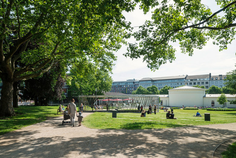 BRIEF: Einhausung für die im Elisengarten entdeckten Funde aus rund 5000 Jahren Siedlungsgeschichte als eines von fünf ‚Archäologischen Fenstern‘ in der Stadt Aachen.