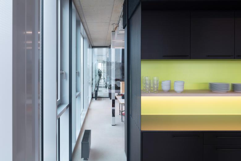Die transparente und offene Raumstruktur verbindet Architektur mit Innenarchitektur, nicht nur räumlich, sondern auch auf der Beziehungsebene. Das & stärken, noch näher zusammenwachsen und interdisziplinäre Zusammenarbeit noch einfacher machen.