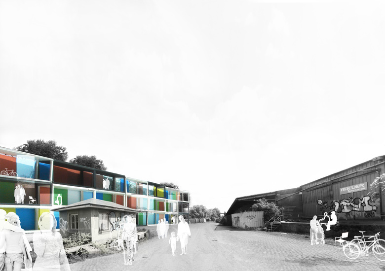 VISION – Die Idee der KÖLN UNITS Ehrenfeld ist aus der Überlegung heraus entstanden, der hohen Nachfrage an Atelierräumen gerecht zu werden. Das Containerprinzip offeriert die Möglichkeit, brachliegendem Raum eine neue Nutzung zu geben und somit den Bewohnern einen einst stillgelegten Stadtraum wieder zur Verfügung zu stellen. Für die Öffentlichkeit wird mit dieser Intervention ein nutzbarer Ort geschaffen, der den unterschiedlichen Faktoren der Stadtentwicklung gerecht wird. In der Struktur der KÖLN UNITS Ehrenfeld liegt die Qualität wirtschaftlicher, sozialer und kultureller Verflechtung. Die konzentrierte Ballung von Kreativen generiert Unternehmungen, welche neben dem wirtschaftlichen Potential auch zum Wohle von Stadt und Quartier nachhaltig Werte schaffen und erhalten. Die konzeptionell wie architektonisch mobile und flexible Struktur des Bauprojekts erlaubt eine lebendige und befruchtende Betriebsamkeit kultureller wie unternehmerischer Natur.
