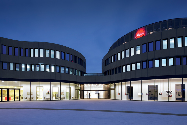 Südöstlich der Wetzlarer Innenstadt befindet sich der neue Firmensitz der Leica Camera AG, welcher sich zusammen mit zwei weiteren Bestandsgebäuden um einen repräsentativen Platz mit freistehendem Kaffeehaus gruppiert. Der Neubau beinhaltet unter anderem einen Kundenerlebnisbereich mit Galerie und Ausstellungsflächen, einen Leica Flagshipstore, ein Mitarbeiterrestaurant sowie einsehbare Produktionsbereiche. Alle Nutzungen werden im Erdgeschoss vereint, was sich an der Fassade in Form einer umlaufenden, raumhohen Verglasung abzeichnet. In den Ausstellungs- und Erlebnisbereichen ermöglicht das Beleuchtungskonzept eine hohe Flexibilität in Bezug auf unterschiedliche Nutzungen. Bei Dunkelheit erscheint die Fassade im Erdgeschoss als leuchtendes Band, welches zusammen mit der Platzbeleuchtung, dem beleuchteten Kaffeehaus und den dezent angestrahlten Bestandsfassaden die Individualität und Einzigartigkeit des Ortes unterstreicht.