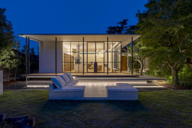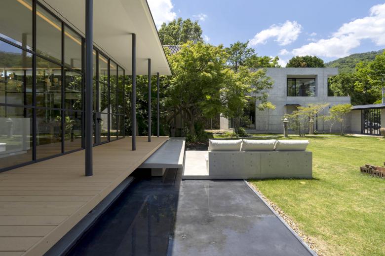 The site is situated in a tranquil residential area along the Ashiya River, overlooking Mount Rokko to the north and the Seto Inland Sea to the south, with the welcoming pavilion designed by Wright also visible.Within the grounds stands a modernist pine tree planted in 1927, which the plan from the outset was to preserve rather than remove.