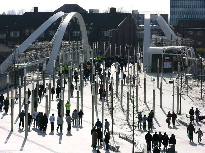 The design for both the bridge and the public space flowed from a thorough understanding of people flow studies. On event days up to 12,000 people per hour need to accommodated with a minimum of disruption, congestion and disturbance.