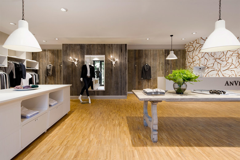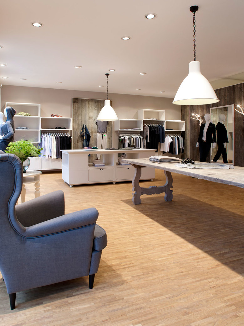 Cashmere und Landluft, Eleganz und Gemütlichkeit, alles in einem, alles zusammen vor den Toren Münchens. Das Bewusstsein für die schönen Dinge im Leben endet nicht an der Stadtgrenze. Und so wird ein Fashion Shop kreiert, der diese Dinge zusammenbringt: ein alter Holztisch aus Holland, Designertapeten aus Italien, Hirschgeweihleuchten aus den USA und solide, feine Schreinerarbeiten aus Bayern. In Kombination