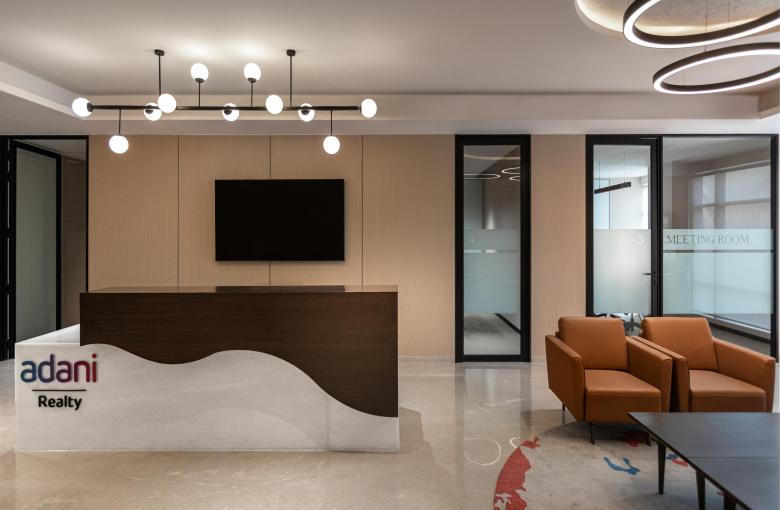 The design caters to both functional and qualitative aspects of collaborative workspaces, embracing a minimalist, globally appealing aesthetic in line with international standards while reinforcing Adani Realty's distinct brand identity. Spanning 16,000 sq. ft. on the third floor of a commercial building, the off