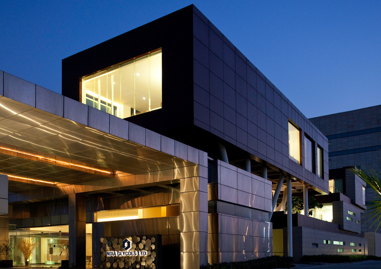 The office design for the corporate office for India Glycols embodies the issues concerning the workplace today, and explores the paradigm of the office space as a social activity. Sited in a non-contextual suburban area of Delhi, the setting, led to the development of an introverted scheme that would address environmental and socio-economic issues from first principles.