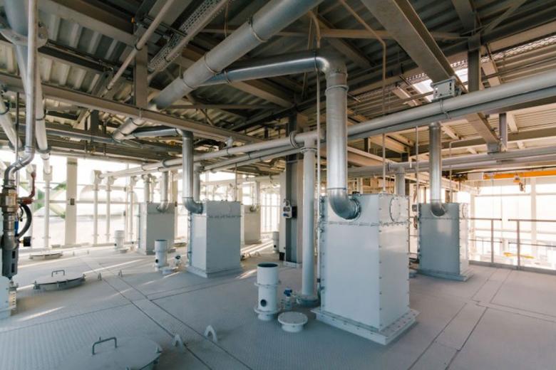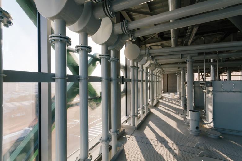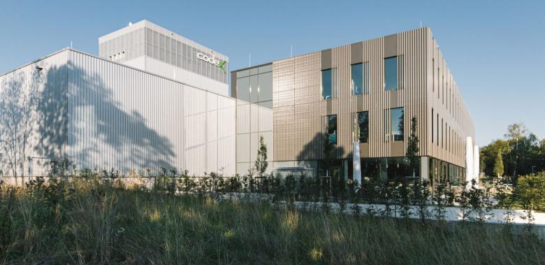 Das Verwaltungsgebäude mit Büro- und Kommunikationsflächen, Laboren, einem Mitarbeiterrestaurant sowie Schulungsräumen ist in Hybridbauweise entstanden – als Zusammenspiel aus Stahlbeton, Holzbaukonstruktion plus Aluminiumbauteilen. Neben der schnellen Bauweise zählt hier auch der Aspekt der Nachhaltigkeit, insbesondere durch den Baustoff Holz, der zugleich ein angenehmes Raumklima schafft.