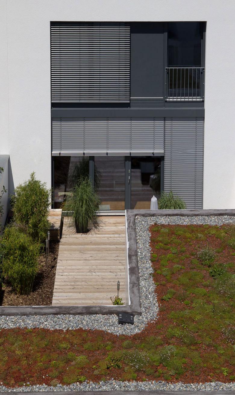 Die sechs Kettenhäuser besitzen ebenfalls moderne Grundrisse mit hohen und hellen Räumen sowie großzügigen Möglichkeiten, das Leben auf die Sonnenterrasse zu verlegen. Die Studiohäuser steigern diesen Gedanken mit einem Gartenhof – ein „Wohnzimmer im Freien“, das vom Wohnbereich aus zu erreichen ist.