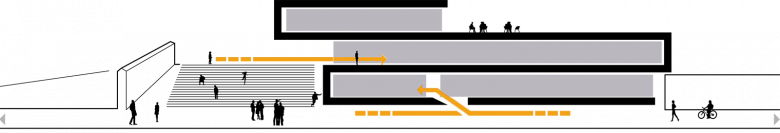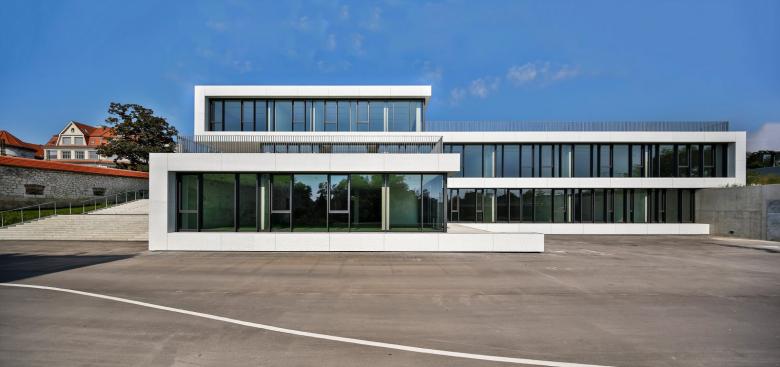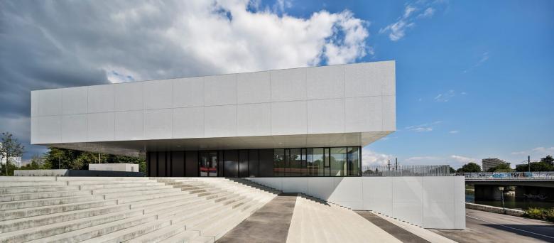 Das Gebäude liegt in exponierter Lage auf einem Plateau über dem öffentlichen Raum, der entlang der Donau verläuft. Geprägt durch eine Bahnlinie, die eine klare Zäsur zum angrenzenden Stadtraum darstellt. Die bestehenden Mauern der Bundesfestung und der Donauturm bilden dabei die städtebaulichen Raumkanten und definieren das Gebäude. So entsteht eine selbstverständliche Struktur zwischen Alt und Neu, zwischen Innen- und Außenraum sowie Ort und Nutzung.