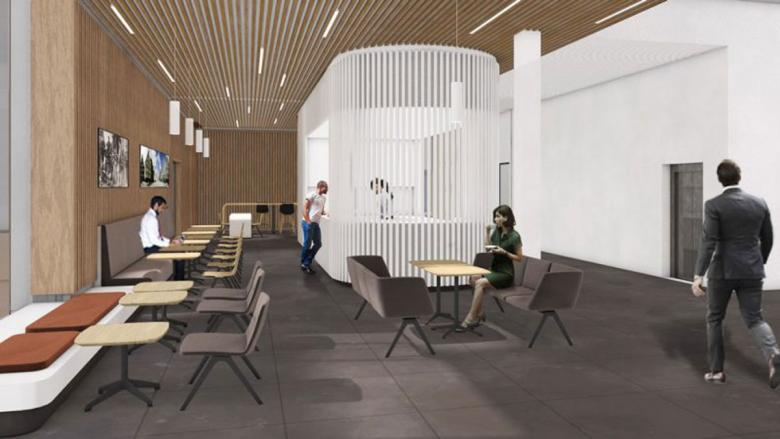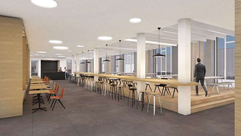 Auch das Innere setzt auf Teamgeist und Innovationskraft. Die Planung zeigt sich vorausschauend und setzt auf IoT-Infrastruktur (Internet of Things) oder das papierlose Büro und erfüllt gleichzeitig den Anspruch an eine offene Kommunikation. So werden nicht nur Cafeteria und „Marktplätze“ – die zentralen Treffpunkte für die Kollegen, für spontane Meetings und kreative Teamarbeit – bewusst offen gestaltet, auch geschlossene Einzelbüros sind nur selten zu finden.