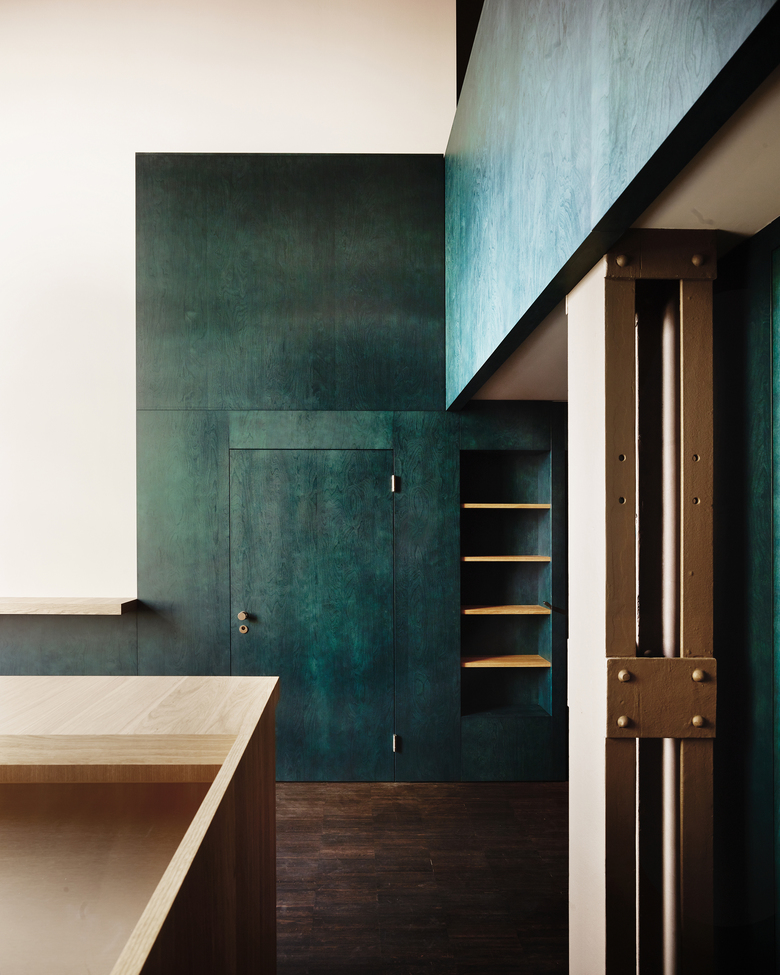Das Projekt zeigt den Umbau eines Büroraumes in ein Business Center mit Gastronomiebereich. Ein hochwertiger Holzbau aus grün lasiertem Sperrholz überschiebt die bestehende Baustruktur und begleitet den Nutzer durch den Raum. Sämtliche Bauteile die berührt werden, sind durch Eichenholz veredelt. Die Verwendung von wenigen jedoch eigenständigen Materialien sowie die effiziente Raumorganisation lassen den Raum grosszügig wirken und zeichnen ihn aus. Zusammen mit der architektonischen Intervention, entwickeln Oliver Christen Architekten auch einen Teil der Möblierung.