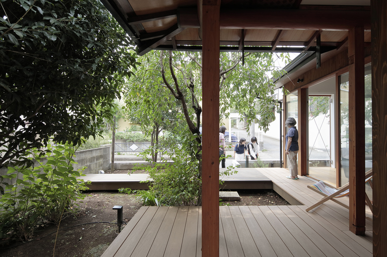 築50年の木造住宅の改修。「プライバシー感(天気や気分によって変わる心のセキュリティ度合い)」を設計テーマに、ITセキュリティを研究する施主と協働した、個人住宅と社会の繋がり方を実験できる住宅です。気分に応じて日常生活を閉じたり開いたりと、住宅がもっとまちとの境界を超えていけるように、生活の丁寧な観察をし、その生活が外側へ拡張されるよう外部化する改修設計を試みました。今まで隠れていた日常がまちから見えることで、<まちに暮らす>という偶然性を取込んだ新しい一軒家暮らしの楽しさが生まれることを期待しています。
