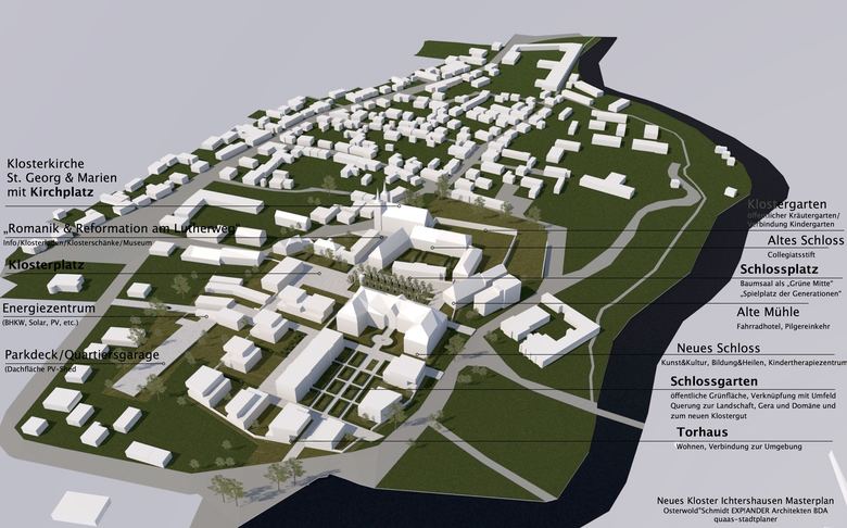 In Kooperation mit dem Lehrstuhl für Denkmalpflege und Baugeschichte der Bauhaus-Universität-Weimar (BUW) wurde geprüft, inwieweit das Nachnutzungskonzept des Collegiatsstifts vereinbar ist mit dem denkmalgeschützten Bestand und den örtlichen Kontexten. Räumlich fokussiert dieses Konzept eines „Neuen Klosters“ – aufgrund des hier gegebenen Bezuges zur ehemaligen Klosterkirche – auf die nördliche Hälfte des Areals. Die südliche Hälfte um das Neue Schloss und das Hafthaus wurde hinsichtlich seiner verträglichen Umnutzung zum Wohnen untersucht. Zudem wurden an der Fakultät Architektur der Fachhochschule Erfurt Projektuntersuchungen zur Integration einer Schul- und Internatsnutzung im südlichen Areal angestellt. Zusätzlich wurde im Auftrag der Gemeinde Ichtershausen ein Integriertes Energetisches Quartierskonzept erarbeitet.