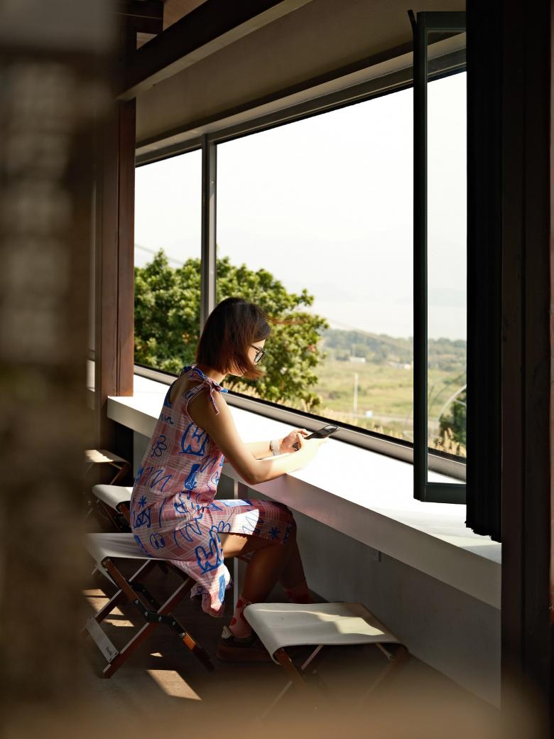 茶室中最引人注目的特点之一,便是朝向四明湖的一整片长条形折叠窗,占据了整整一面墙壁,犹如一个独特的取景框。在宜人的天气里,这横向折叠窗可以完全敞开,让客人尽情欣赏美不胜收的景色,随时享受微风拂面的宜人感觉。
