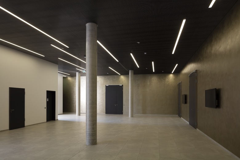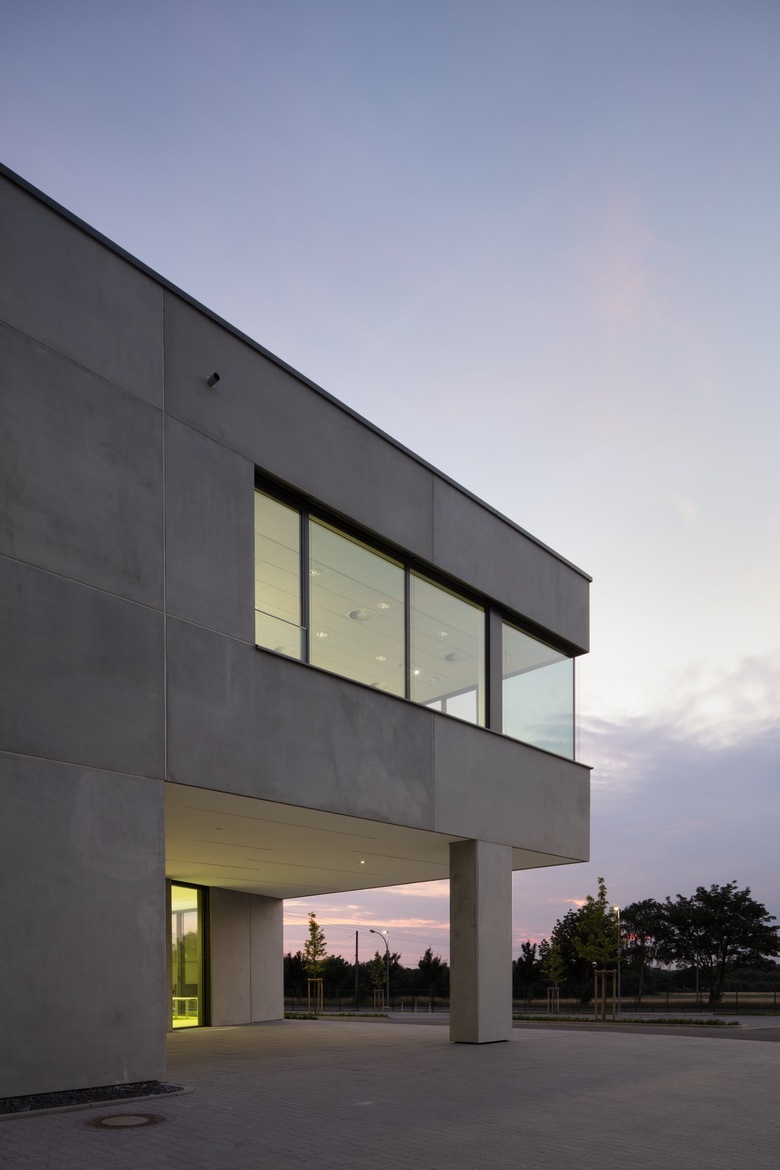 Das Schulungsgebäude der Rewe Großhandel EG befindet sich auf dem Gelände der Rewe Zentrale in Dortmund. Der kompakte Baukörper beinhaltet im Erdgeschoß neben den Seminarräumen einen flexibel nutzbaren Veranstaltungssaal sowie einen Workshopbereich mit angeschlossener Küche. Im Obergeschoss wird das Raumangebot durch Büro- und Besprechungsräume, gruppiert um einen zentralen Innenhof, ergänzt. Die äußere Hülle präsentiert sich als Sichtbetonkubus mit großzügigen Glasausschnitten. Bei der Innenraumgestaltung wurden die verschiedenen Markenlogos der Rewe in den Farb- und Materialkonzepten der Räume gestalterisch umgesetzt.