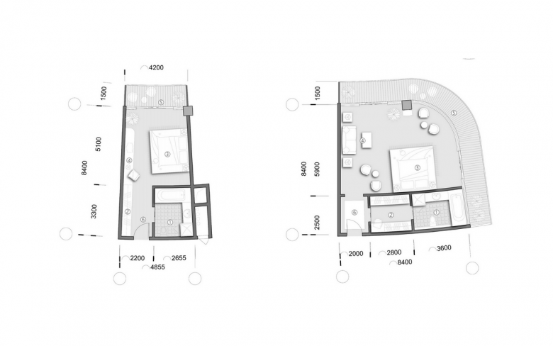 Environmental dialogue: An open platform is set at the top of the hotel podium, which opens towards the direction of the main landscape axis of the park, maximising the landscape environment resources into the interior of the site. The elevated area facing the water view is set up to form the external part of the restaurant in the public area of the hotel, and the building is linked indoors and outdoors. Line of sight control: the guest rooms on the south side of the hotel face the waterfront and enjoy the river view; the guest rooms on the north side face the mountain and enjoy the mountain view; the guest rooms in the inner courtyard enjoy the view of the landscape axis of the park.