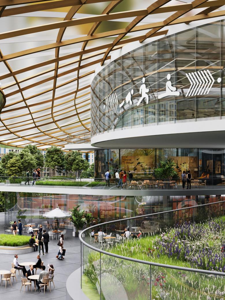 Neighbourhood centres should be designed with the people's aspirations for a better life in mind, and through humanistic, ecological and digital means, they should ultimately achieve a whole-life chain community. Creation should be tailored to local conditions and local characteristics; the form needs to achieve neighbourhood sharing; the content should be relatively focused on public welfare support; and the means should make full use of intelligent operation and management.