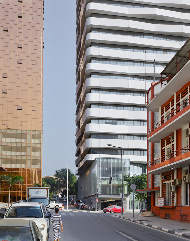 The 1º Congresso Tower assumes a prominent role in the fabric of central Luanda overlooking Largo Lumeji square, revealing a suave and reserved formal dynamism that nevertheless leaves a striking image on the urban identity.