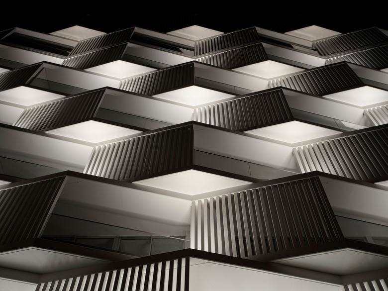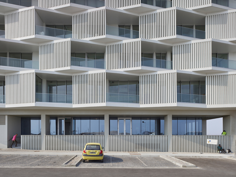 In the design of the building, which has 1 office floor and 7 residential floors, the assymetry of the façade planes together with the somewhat angular windows make for an expressive corpus that can be likened to a huge music staff. Over the course of the day, the sunlight creates and recreates a multiplicity of games of light and shade, bringing to life this great partiture that presents variations of scales, metre signatures, interruptions and silences.