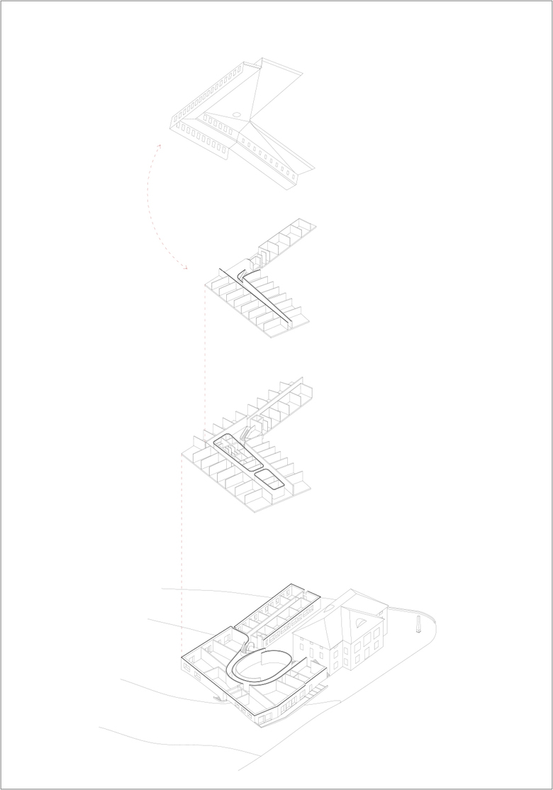 Das Entwurfskonzept bindet den bereits zum Abriss freigegebenen Gasthof aus Bruchsteinmauerwerk in die Gestaltung der neuen Landwirtschaftsschule im Klosterbezirk Alt-Zella ein. So kann die vorhandene Bausubstanz, auch ohne Anerkennung als Denkmal, im Sinne einer Fortschreibung der Ortserinnerung erhalten werden. Sowohl die bereits durch zahlreiche Umbauten beschädigte Bausubstanz, als auch die vorhandenen räumlichen Qualitäten allein, würden einen Erhalt des Gasthofs nicht rechtfertigen.