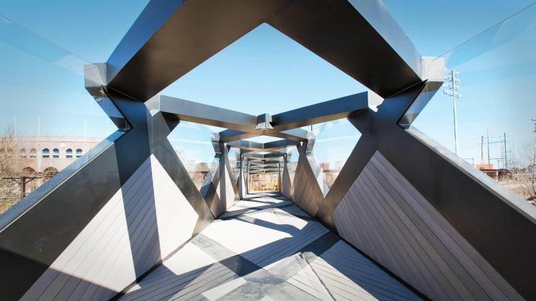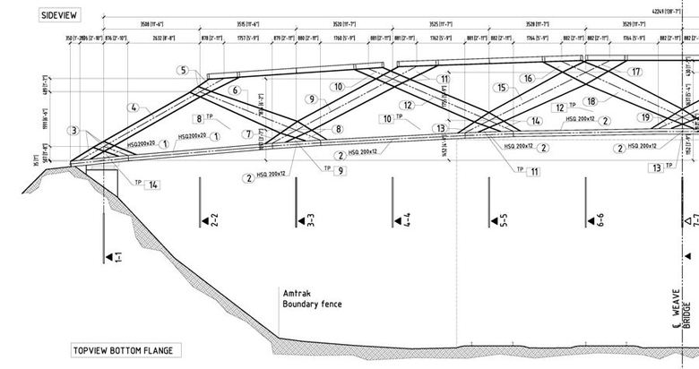 Entworfen von dem Arup Ingenieur Cecil Balmond und bearbeitet von TEUFFEL ENGINEERING CONSULTANTS als Ausführungspartner der Advanced Geometry Unit (AGU) von Arup London, bilden die gegenläufige Spiralen ein Tragwerk mit außergewöhnlichen räumlichen Qualitäten. Die 46 m lange Fußgänger- und Radfahrerbrücke besteht aus einem geometrisch-strukturellen Gewebe von sechs unterschiedlichen Bändern, die sich in der Landschaft entfalten.