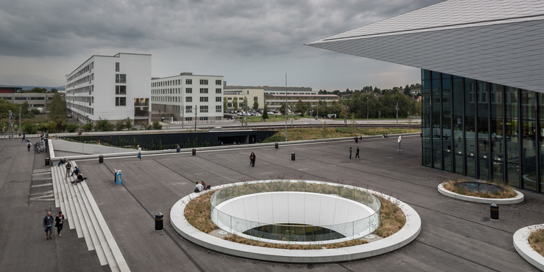 Situé dans le secteur nord du campus de l’Ecole Polytechnique Fédérale de Lausanne sur la commune d’Ecublens, cet ensemble de constructions représente un quartier entier de cette cité de la science, qui abrite des infrastructures indispensables au rayonnement de l’EPFL. Jouxtant idéalement la station du métro reliant Renens à Lausanne, le complexe comprend un Centre de Congrès avec une salle principale d’une capacité maximum de 3000 personnes, un bâtiment de logements pour étudiants d’une capacité de 516 lits et un espace extérieur public qui réunit les deux édifices. Le projet du complexe comprend également un centre commercial, des espaces administratifs et de services ainsi que des restaurants et des commerces situés au niveau de la place à proximité immédiate de la station du métro et un parking de 275 véhicules.