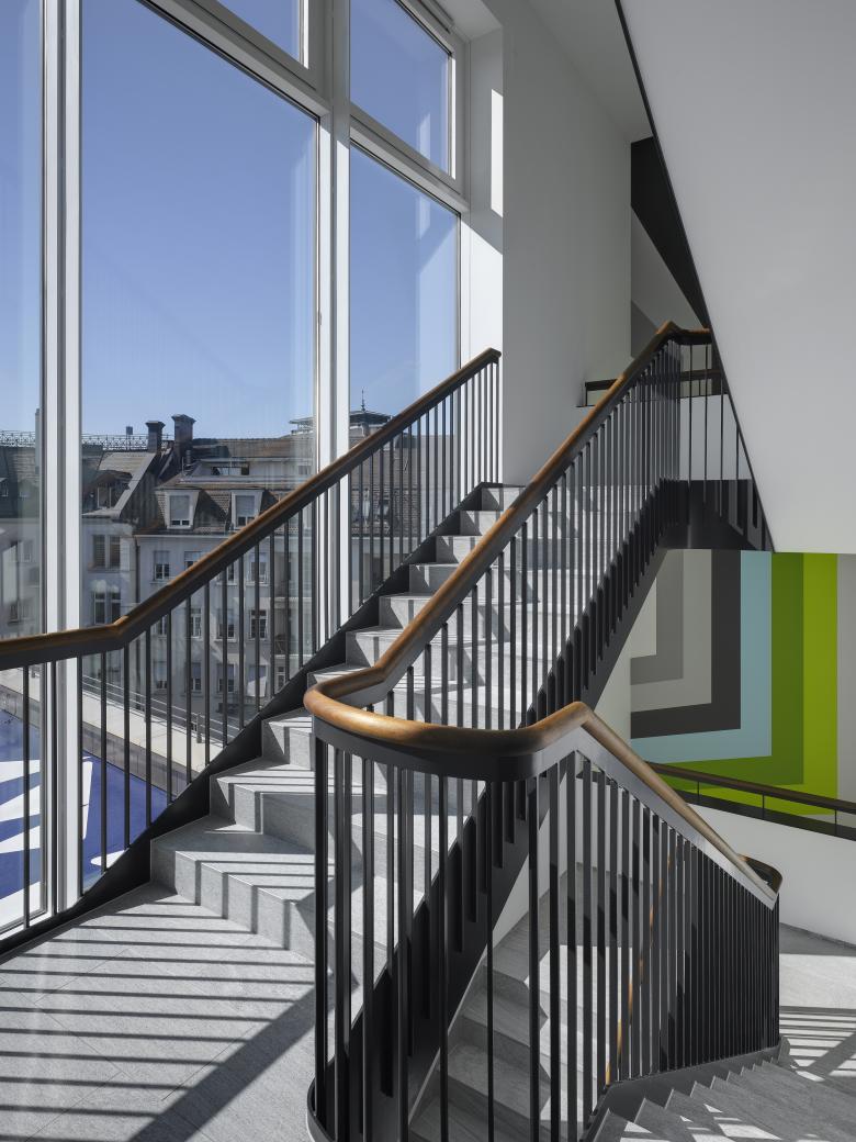 ‚Die Kunst in der Überarbeitung architektonischer Zeitzeugen besteht darin, Wirkung zu erzielen ohne aufzufallen. Man nimmt Anpassungen vor ohne zu verändern und schafft eine neue Ausstrahlung, ohne die Herkunft zu verlieren.‘ Das Gebäude an der Seefeldstrasse 8 reiht sich in eine Serie von markanten Geschäftshäusern ein, die Ernst Zuppinger in den späten 1920er und frühen 1930er Jahren in Zürich erstellte. Eine andere, filigranere Sprache spricht das angrenzende Apartmenthaus an der Seehofstrasse 15. Beide Gebäude wurden 1930 von Zuppinger für die Baugenossenschaft Seegarten realisiert. Heute, gut 80 Jahre später, fasst die Nationalbank die beiden Bauten zu einem Geschäftshaus zusammen. Unter Betrieb werden die Gebäudehülle, der Innenausbau und die Haustechnik komplett erneuert. Die Fassade wird auf ihre ursprünglichen Qualitäten zurückgeführt, ohne dem Versuch zu erliegen, neue Stilelemente hinzuzufügen. Ein nachträglich erstelltes Vordach wird zurückgebaut, ein dezentes Farbkonzept betont die Fensterbänder und einen zurückhaltenden Gebäudesockel. Eine Gebäudeerweiterung im Innenhof ordnet sich, trotz raumhohen Fenstern, unauffällig in den Bestand ein. Ein zentrales Treppenhaus mit Aufzügen wird «chirurgisch» in den bestehenden Bau eingefügt. Der massive Eingriff in die Grundstruktur fordert eine akribische Planung und höchste Präzision, um Betrieb und Sicherheit nicht zu gefährden. Der neue Innenausbau legt Wert auf eine durchgehende Materialsprache und eine ruhige Raumatmosphäre. Vier Künstler, Lang/Baumann, Francis Baudevin, Karim Noureldin und Ursula Palla, arbeiten ihre Werke in den Bau ein. Sie bereichern damit das Gebäude, ohne die ruhige Architektursprache zu stören und schaffen neue Raumwirkungen, ohne die Erscheinung zu dominieren.