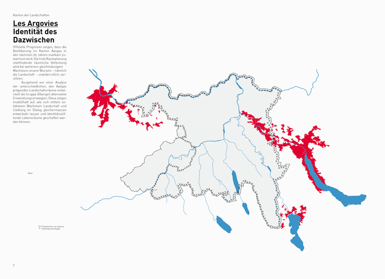 Von der Zersiedelung zum selektiven Wachstum: Die Gruppe Bibergeil – bestehend aus den Architektur- und Landschaftsarchitekturbüros Liechti Graf Zumsteg aus Brugg, Meier Leder aus Baden, Schneider & Schneider aus Aarau und Studio Vulkan aus Zürich – fordert eine spezifische und synchrone Entwicklung von Siedlung und Landschaft im Aargau. Mit Entwürfen wie dem Hero-Prinzip, der Städtekette oder der Waldstadt Lenzburg zeigen die Architekten und Landschaftsarchitekten in der Studie «Les Argovies – Identität des Dazwischen» auf, wie sich der Aargau räumlich entwickeln soll.