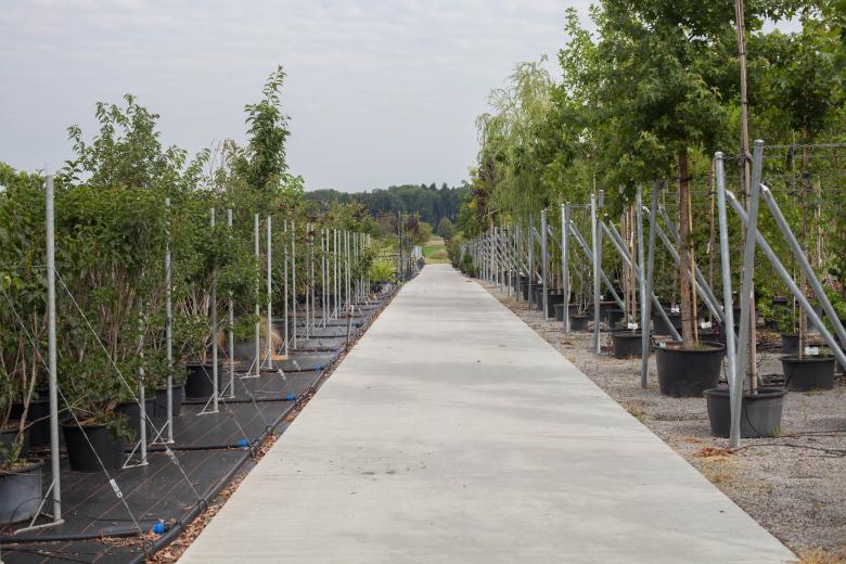 Das Projekt basiert auf dem Ansatz, dem Kunden ein sinnliches Einkaufserlebnis durch eine szenografische Abfolge von unterschiedlichen Freiräumen und Gebäuden zu ermöglichen. Der Ausgangspunkt befindet sich im Zentrum der Baumschule, von wo über einen Rundweg das neue Verkaufserlebnis gestartet wird. Die Pflanzenpräsentation bildet eine stimmungsvolle räumliche Komposition und bietet auch Bereiche für saisonale Vegetationshöhepunkte. Das Verkaufsgebäude, besteht aus zwei Gewächshausmodulen und einem angegliederten Cabriohausmodul. Im pflanzendominierten Gewächshaus ist eine Verkaufsboutique, ein Café sowie die zentrale Bedienungs- und Kassentheke. Organisatorisch werden Privatkunden und Gartenbaukunden voneinander getrennt, wodurch optimale Betriebsabläufe erreicht werden. Die bestehenden Betriebsräume wurden neu organisiert und entsprechen den Betriebsanforderungen. Eine neue Produktionsfläche im nordwestlichen Bereich der Baumschule bietet auf 1.5 Hektar genügend Platz für die umumfassende Eigenproduktion. Das an Ort gesammelte Regenwasser wird in einem grossen Wasserrückhaltebecken aufgefangen und für die Bewässerung der Pflanzen wiederverwendet.