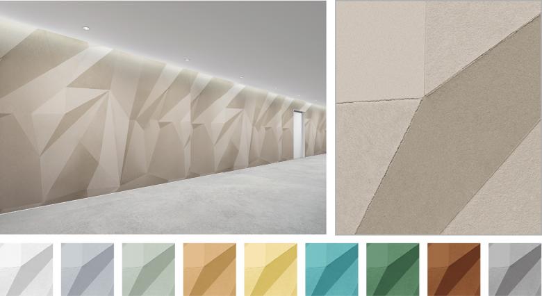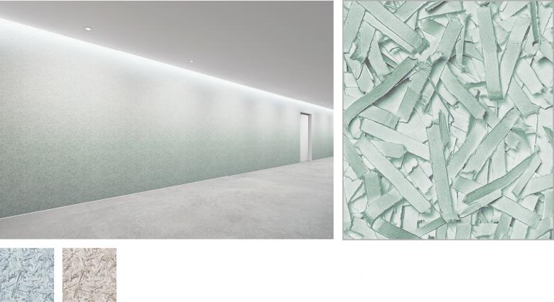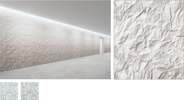 壁紙の素材として使われることが多い「紙」に敢えてスポットライトを当てた。“折る”、“破る”、“皺を伸ばす”など、さまざまな手を加えることによって、「紙」のもつ本来の美しさを改めて考え、デザインされた“Nature of Paper”。実験的なプロセスを経て、紙のあらゆる表情が『「壁」「紙」』として体現されたラインナップとなった。