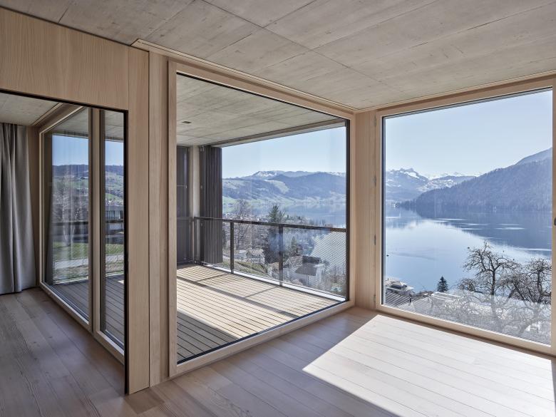 Die erste Etappe der Wohnüberbauung Erliberg ist Bestandteil eines im Jahre 2015 bewilligten Quartiergestaltungsplanes. Die Grundkonzeption besteht darin, den landschaftlichen Aspekt von grosszügig bemessenen Wiesen, welche die Hanglandschaften am Ägerisee prägen, trotz Bebauung spür- und erlebbar zu behalten. Die Konzentration der Nutzung auf zwei grössere Gebäude ermöglicht dies.