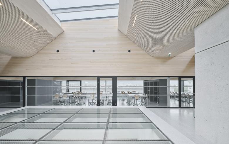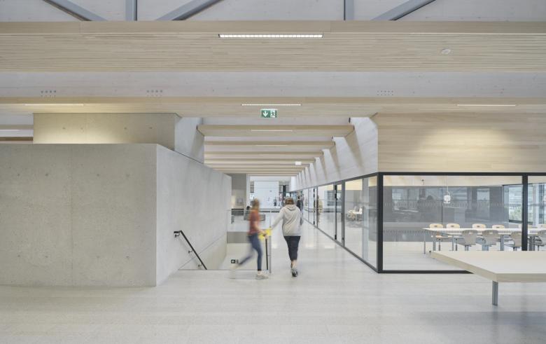 Es entstand eine flexibel nutzbare Unterrichts- und Lernlandschaft, die in der angebotenen hohen Aufenthaltsqualität den heutigen Anforderungen moderner Unterrichtsgestaltung entgegenkommt. Neben den Klassenräumen und den CAD-Sälen wird Lernen in unterschiedlichen Gruppengrößen für Teilungsklassen möglich. Vorgefunden wird eine Zonierung, die sowohl Rückzugsorte, Lernbereiche und Pausenbereiche in räumlicher und zeitlicher Abfolge ermöglicht, zusätzlich aber auch für Ausstellungen und Veranstaltungen unterschiedlicher Art genutzt werden kann.