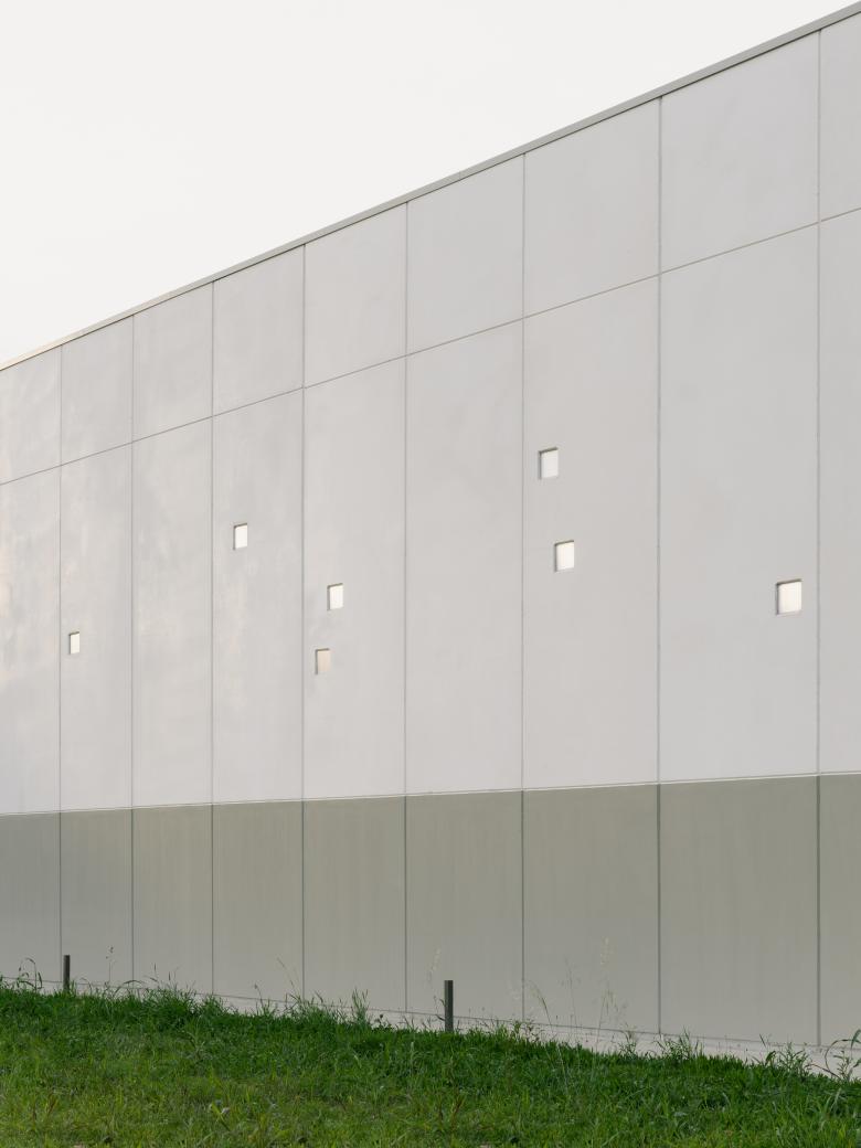Inside, zenithal light coming from the north ensures uniform illumination of the space, while the openings along the longitudinal sides are shielded with polycarbonate walls that filter out direct sunlight from the playing field.