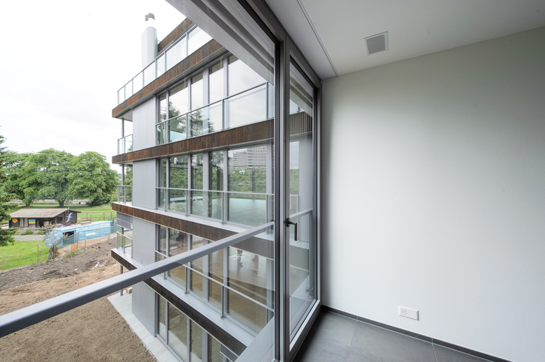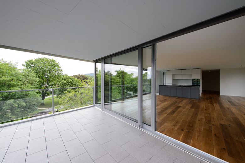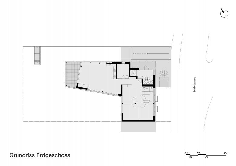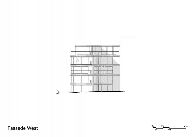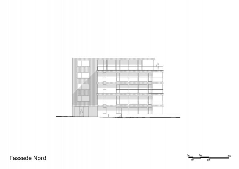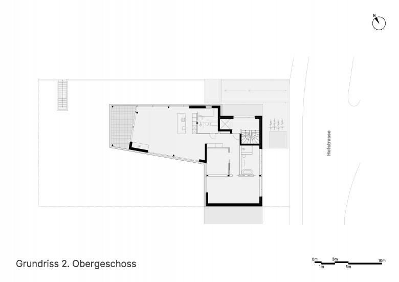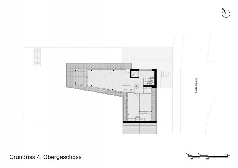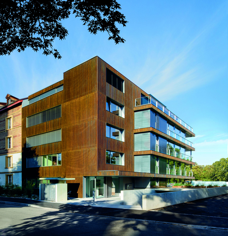 Das Gebäude mit fünf Eigentumswohnungen bietet Sicht auf den Rhein und grenzt an das unverbaubare Grüngebiet „Rheinpark“ in der Nähe der Kraftwerkanlage Birsfelden. Das winkelförmige Gebäude ist Abschluss des Strassenzuges der Hofstrasse. Das Gebäude zeichnet sich durch seine einzigartige Form und Fassadenstruktur mit hinterlüfteten Cortenstahl-Lamellen aus. Die Gebäudehülle ist energetisch optimiert, die Wohnungen haben gehobenen Ausbaustandard mit Komfortlüftung. Vom Erdgeschoss bis ins 3. Obergeschoss befinden sich 4 4.5-Zimmer-Wohnungen, im Attika eine 3.5-Zimmer-Wohnung mit grosser Terrasse. Wohnen, Essen und Kochen der Wohnungen sind auf die Flusslandschaft ausgerichtet.